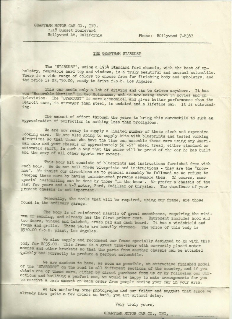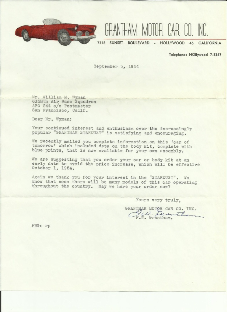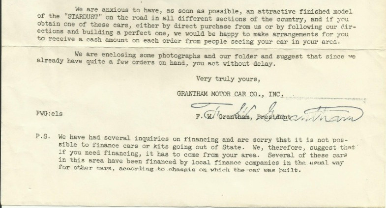 Factory Letter signed by Fredrick Grtantham